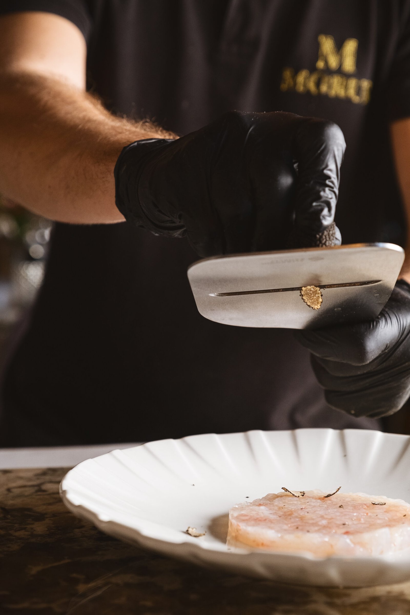 La cucina di Morus si basa su una selezione attenta della materia prima, con particolare attenzione al pesce fresco e alla stagionalità.